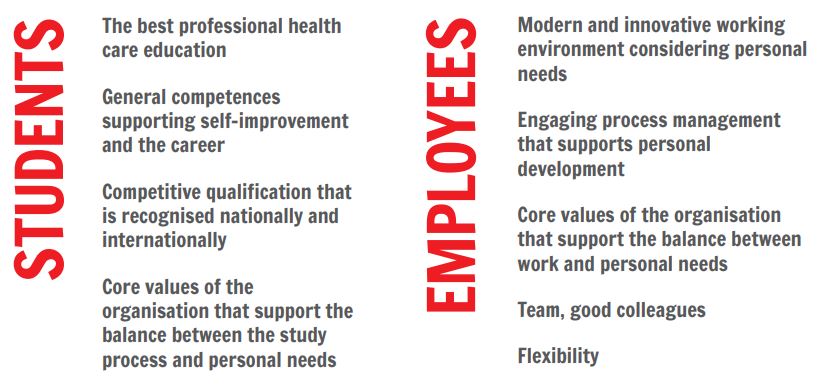 The main responsibility of Tartu Applied Health Sciences University is to the students. The value provided to the students depends on the value that is provided to the staff.