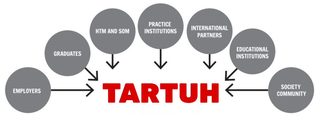 The circle of university’s partners is varied, involving the graduates, practice institutions and other employers, professional associations, as well as different social organisations. In the development and organisation of higher education, as well as in the development of the best solutions for the provision of higher education successful collaboration is carried out with other higher education institutions, the Estonian Ministry of Education and Research (HTM) and the Ministry of Social Affairs (SoM).
